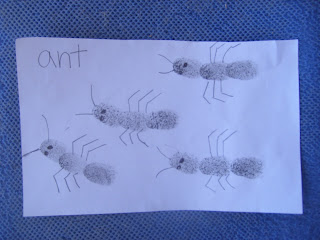 We are studying gardens and the bugs that live there this month. One bug we talked about were ants. We made ant thumbprints to discuss the different parts of an ant and how many legs they have.